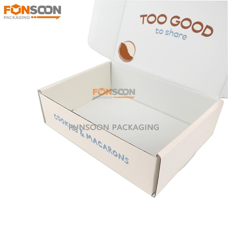 The corrugated cardboard box is made of e-flute corrugate cardboard, recyclable and degradable. Perfect for cookie dessert mailer shipping packaging.