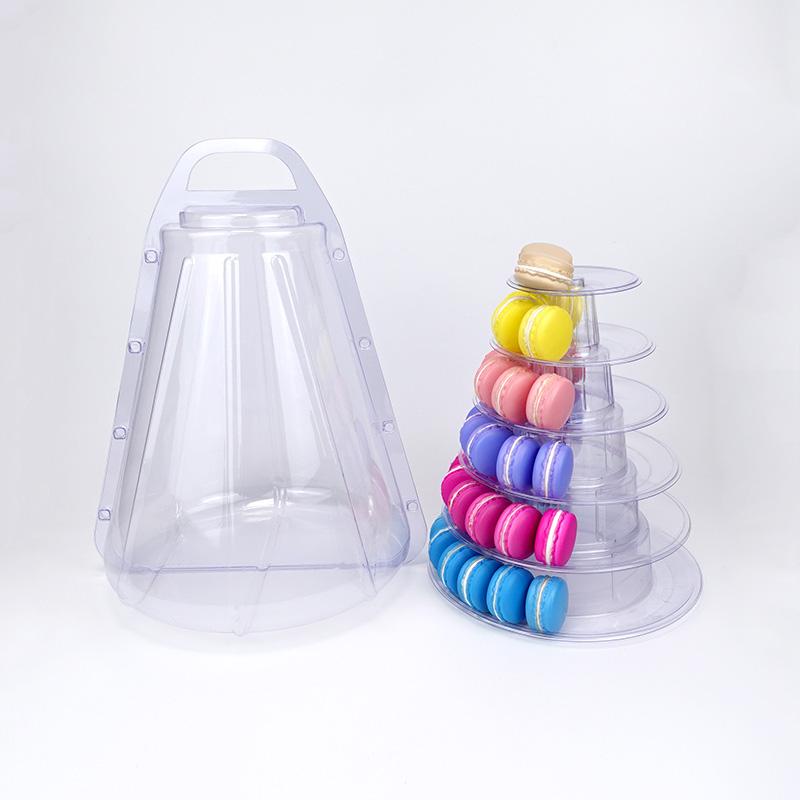 Our macaron tower is made of 0.7mm high quality food grade PVC material, the outer carrying case with handle is convenient to carry.Adjustable tiers and can be used with just 2 or up to 6 tiers, can holds approximately 90 macarons.Macaron display stand is perfect for shop display,parties,wedding receptions.