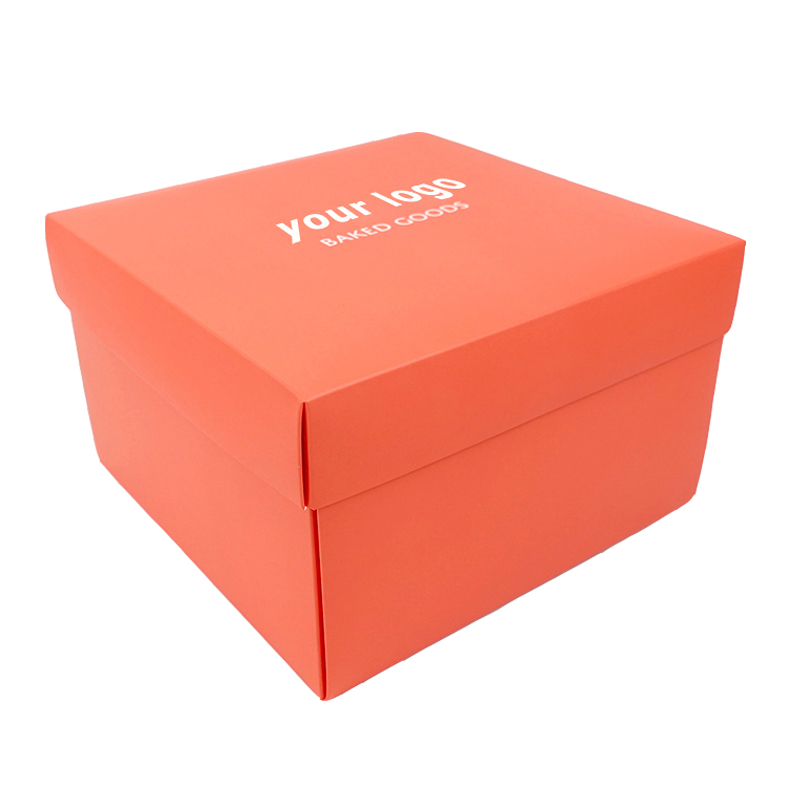 The paper cake gift box measures 8*8*5 inches,it can be used to pack and protect chocolate cake, cheese cake and other desserts.The finish of the box is matte lamination, which touch feels good and shows advanced.We can customize the box to the size you need and add your own logo printing to make the box more personalized.
