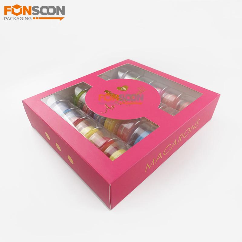 Custom Logo 24 Packs Macaron Cookie Paper Gift Box with Display Window |