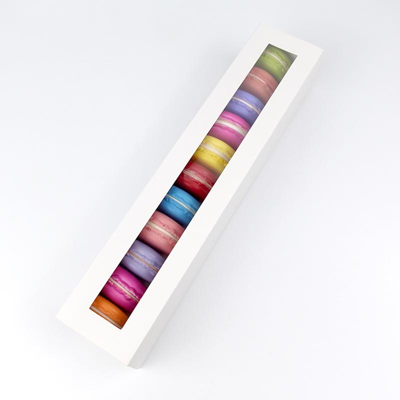 Food Grade Paper Packaging Long 11 Packs Macaron Biscuit Drawer Box With View window For Dessert Cookies |