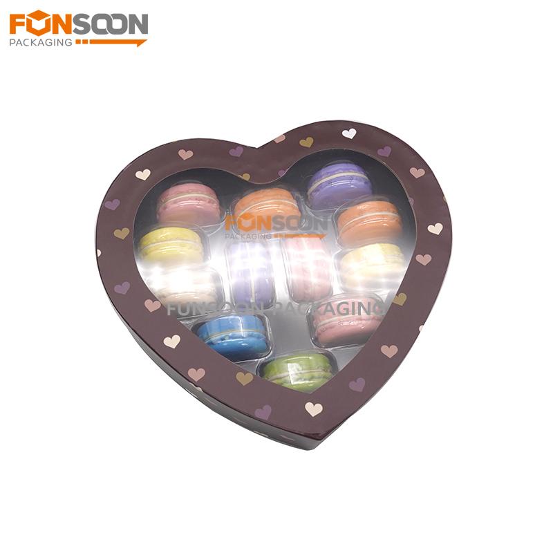 The macaron gift box is designed to solve the problems of flimsy, low-end packaging and the lack of premium presentation for high-value goods. Crafted from high-quality 1200gsm rigid cardboard with heart shaped, it provides superior protection and a smooth unboxing experience, while its refined look enhances shelf appeal and strengthens brand image, perfect for valentine's day dessert packaging display.